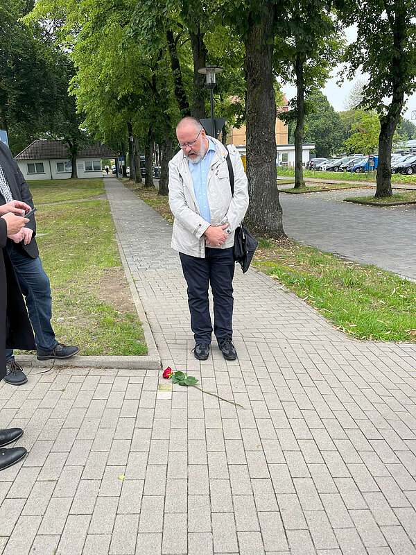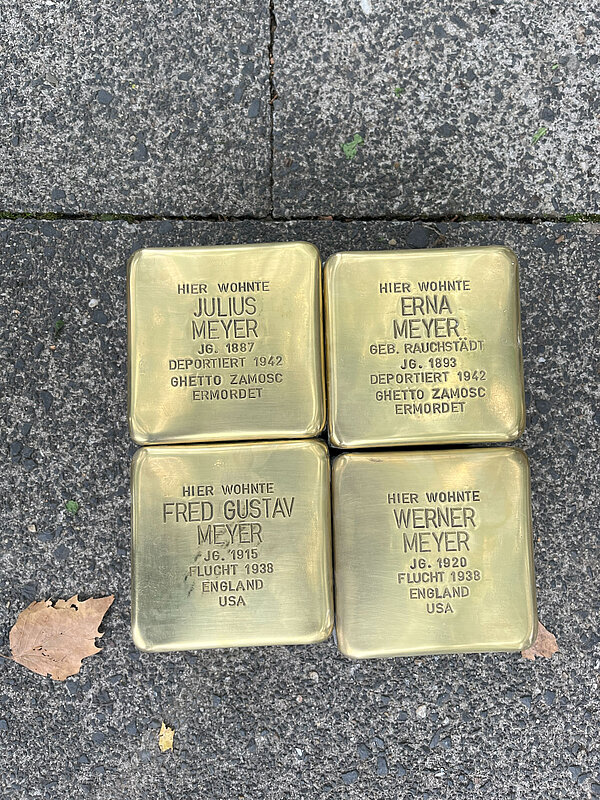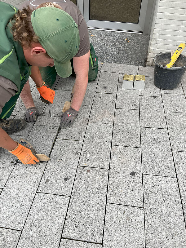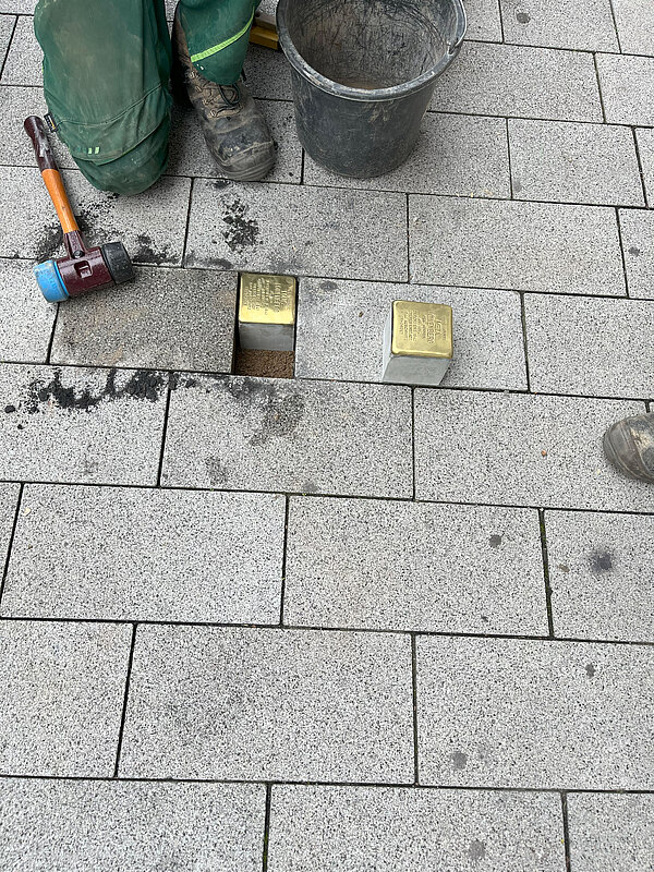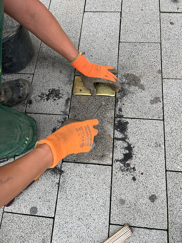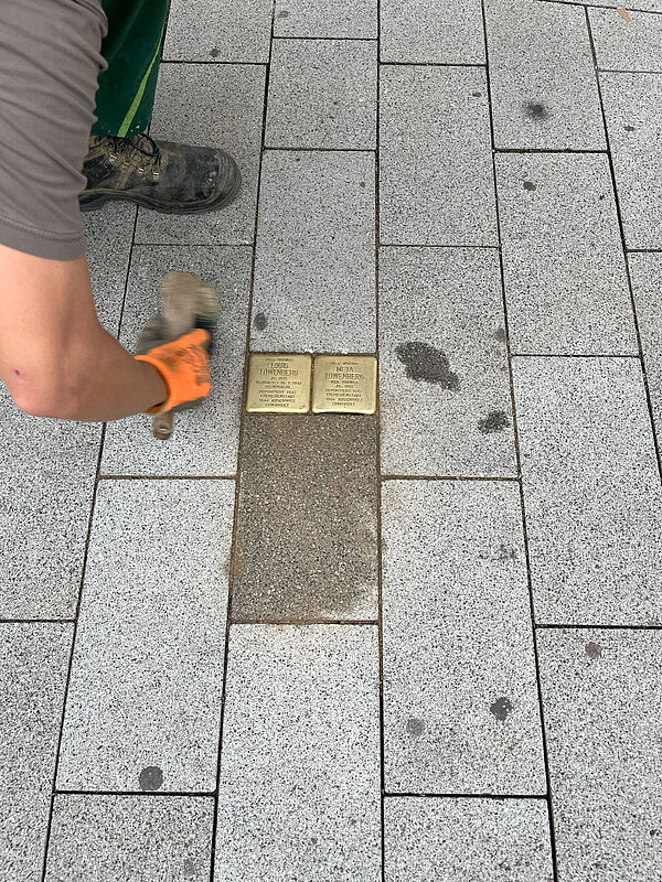 Info: Im Rahmen dieser Verlegungen haben wir auch einen Stolperstein wieder neu verlegt, welcher zuvor bei Bauarbeiten entfernt wurde. Ihr vermisst ebenfalls Stolpersteine nach Bauarbeiten oder habt festgestellt, dass Stolpersteine beschädigt sind? Meldet euch gerne bei der Arbeitsstelle Zukunft braucht Erinnerung und wir kümmern uns dann darum.