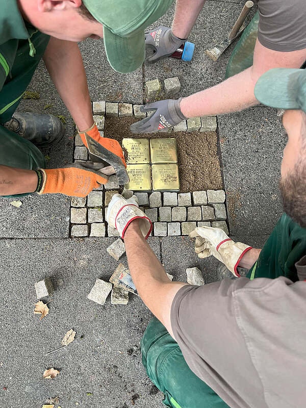 Am vergangenen Mittwoch konnten in Dortmund acht neue Stolpersteine verlegt werden. Gemeinsam mit dem Jugendring Dortmund haben wir die Verlegungen begleitet. Da Gunter Demnig nicht anwesend sein konnte, übernahmen Auszubildenden der Dortmunder Friedhöfe die Verlegung der Stolpersteine.