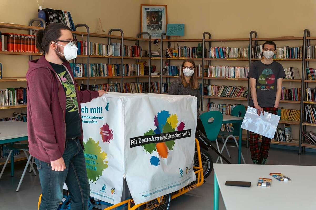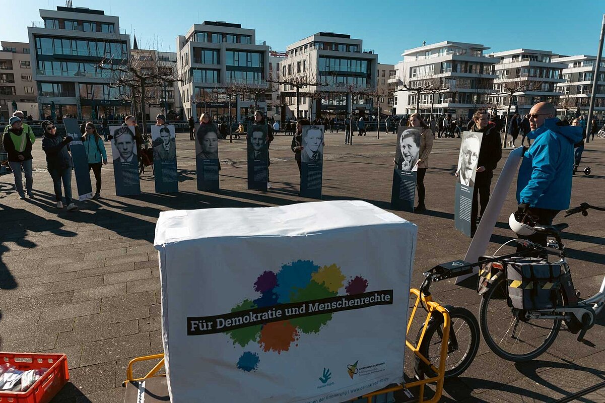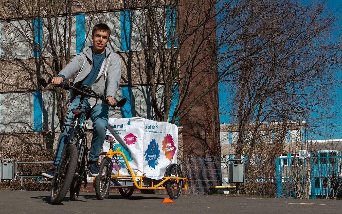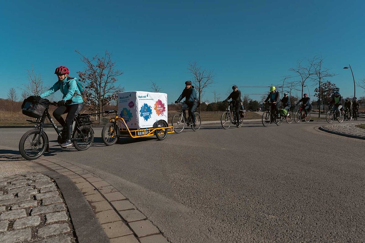 Mit unserem neuen Projekt Gedenken Unterwegs bringen wir das Gedenken direkt zu den Menschen und machen es greifbarer. Mit thematisch gestaltetem Lastenrad, Schwerlastanhänger und Pedelecs ist es den Botschafter*innen der Erinnerung möglich, authentische Orte zu besuchen und diese für uns so alltäglichen Orte aus einer anderen Perspektive wahrzunehmen.